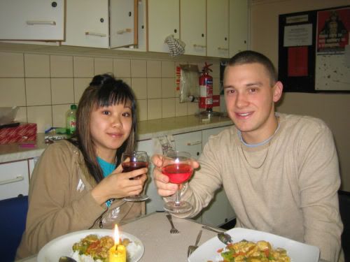 we got some minced pork at the market and made some DUMPLINGGGSSSS!!!! they were yummy....but of course not as delicious and juicey and at home. even though we eat the frozen ones at home.