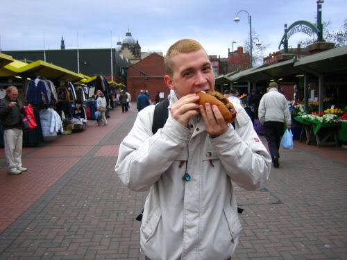 the next day we went back again to the leeds city market......and adam got hungry